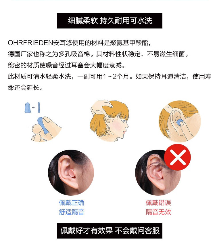 Германия охропакс Силиконовый ушной заполнение -Барриер -Проницаемый шумоподанный -надежный снижение шума в общежитии, тихий сон, удобный, не поднимающий уши