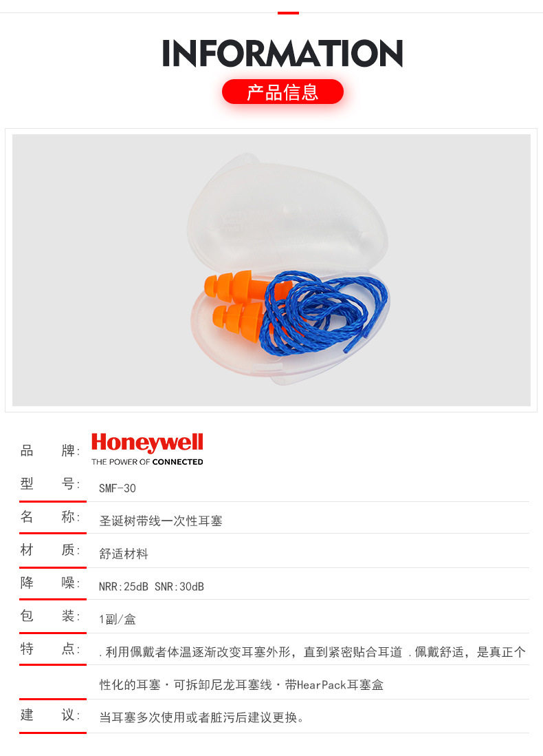 Honeywell SMF-30 полосы одноразовой затычки для ушей, звукоизоляция, шум, сон, сон, плавание, сон, обучение затычкам для ушей