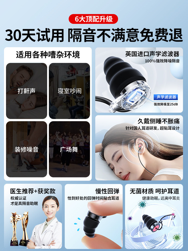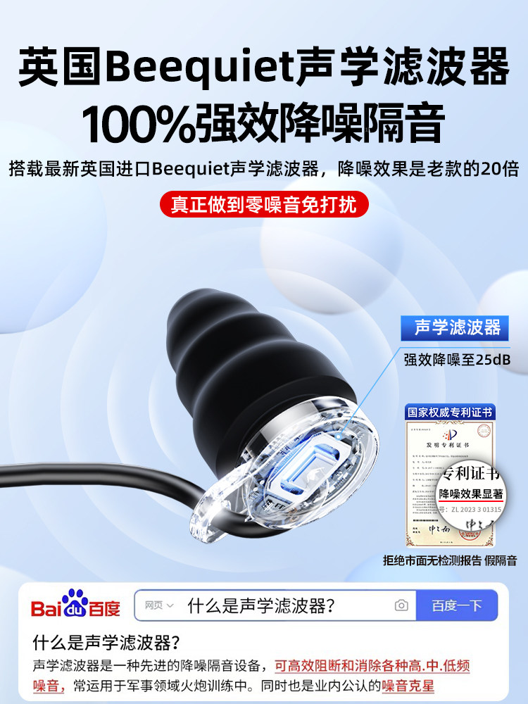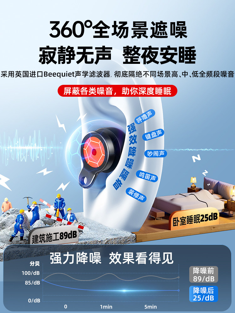 Британские Beefeefiet Затычки для ушей сна сон сна Спин -шум Специфическая скорость супер -общежитие