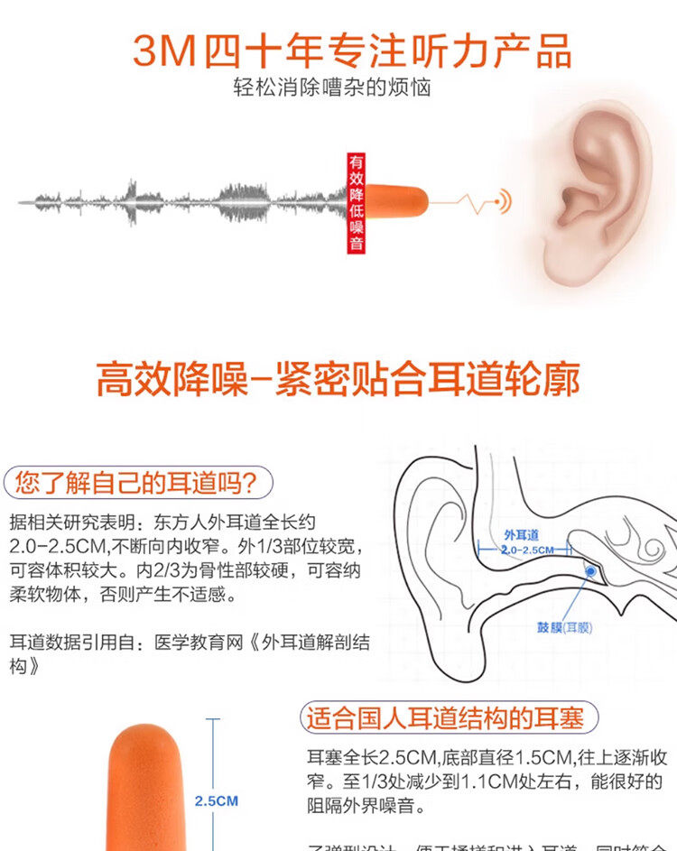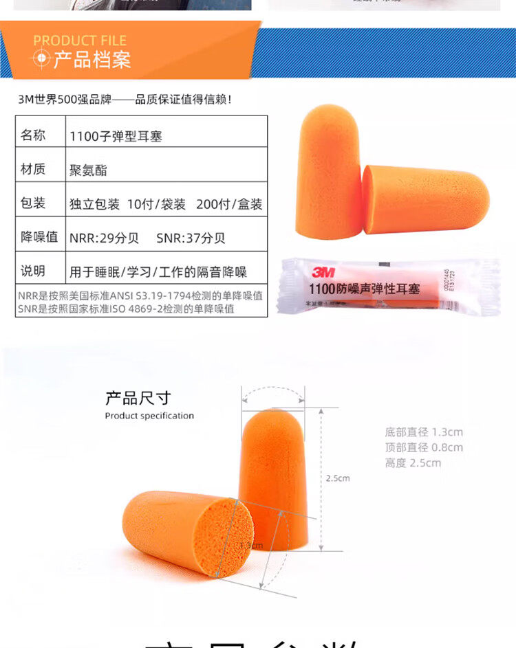3M Беруши с шумоподавлением 1100 Противошумная специальная промышленная звукоизоляция для сна 1110