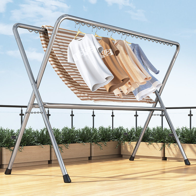 Стальная труба одежда для сушки стойки складная напольная балковая балкон подвесная одежда наружная ветропроницаемая ветропроницаемая ветропроницаемость двойной шестнадцатилетный одеял.