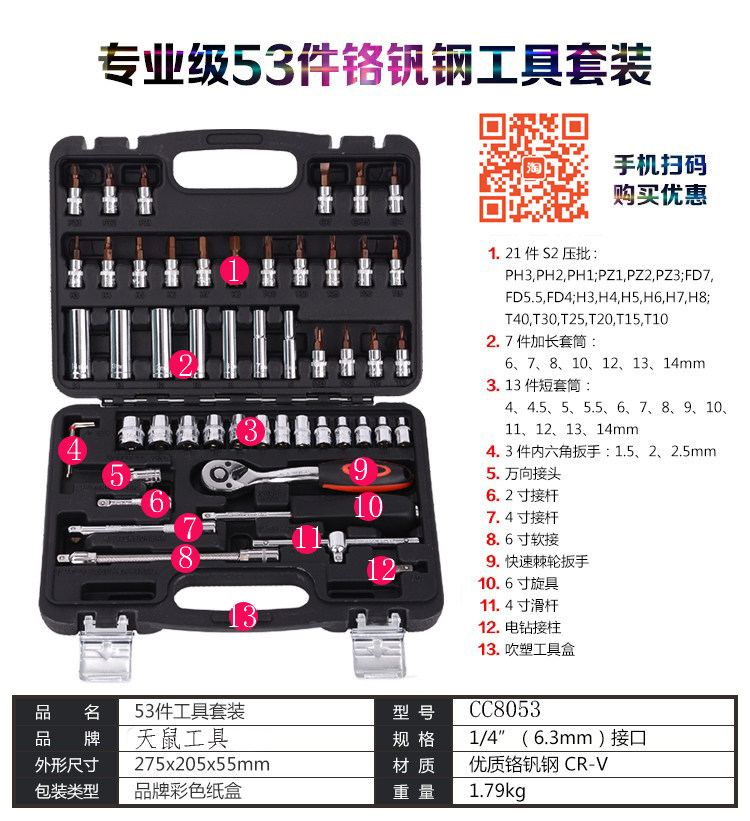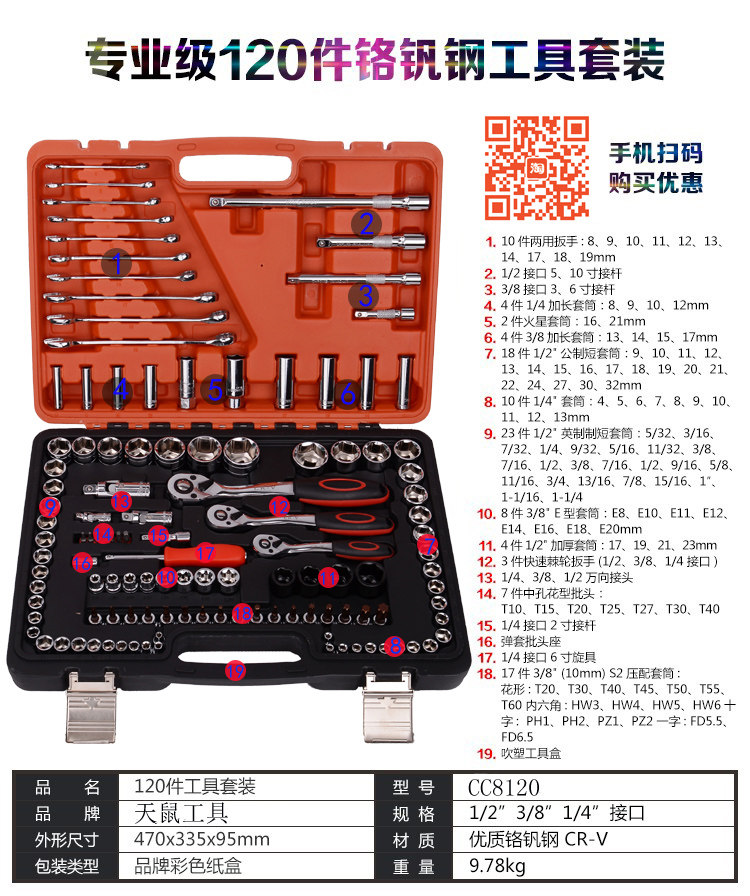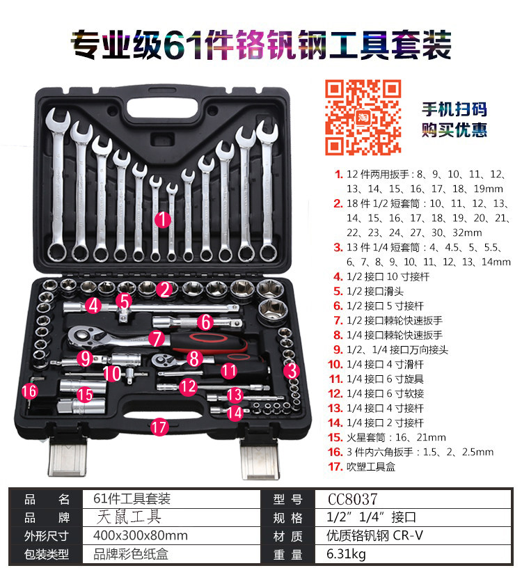 Комплект, набор инструментов, быстрый гаечный ключ, 82 шт