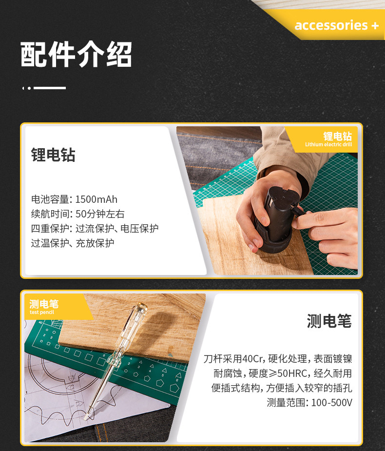Комплект, универсальные столярные изделия, электродрель, электрический фонарь