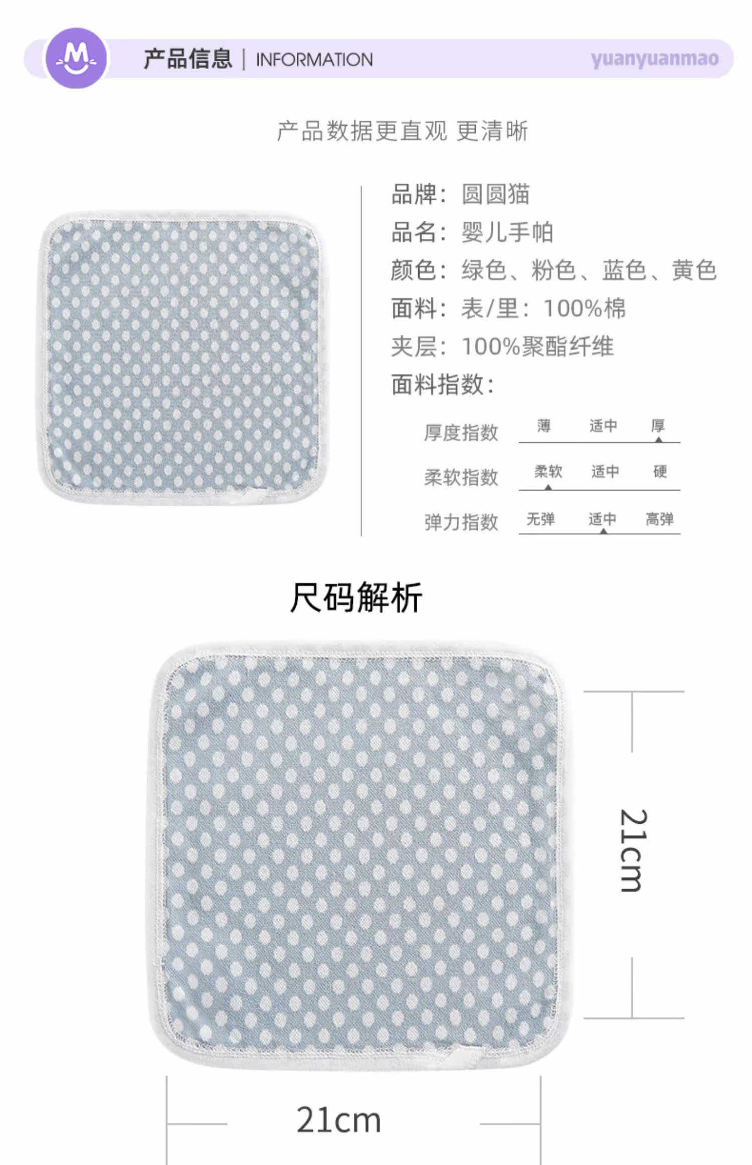 圆圆猫 Детский носовой платок, слюнявчик для новорожденных для раннего возраста для умывания, полотенце