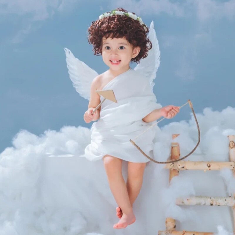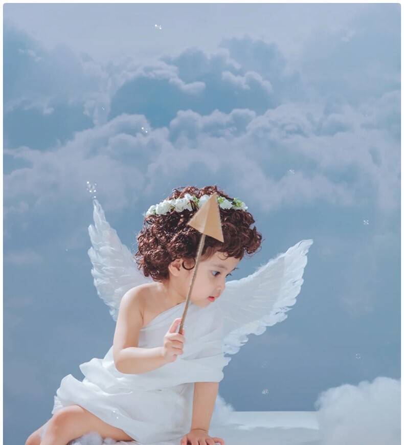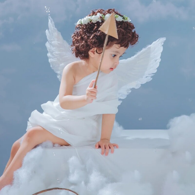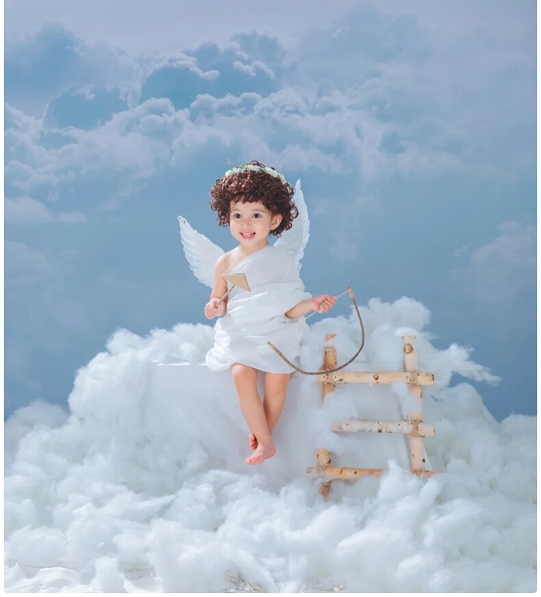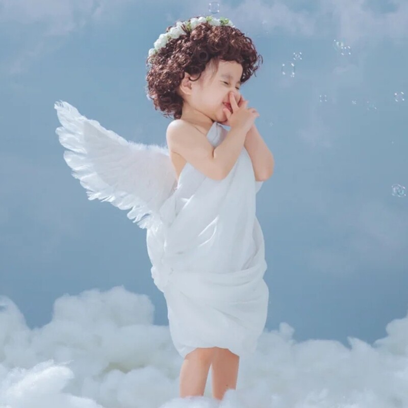 Детская фотография, масляная живопись, стиль ангельские перья, крылья, фэнтезийная тема, серия, мальчик и девочка, ребенок 2-3 лет, реквизит для фотосессии