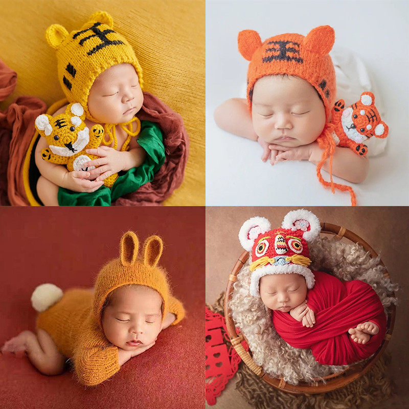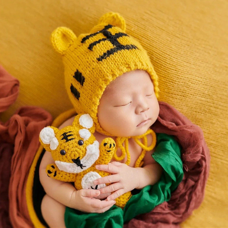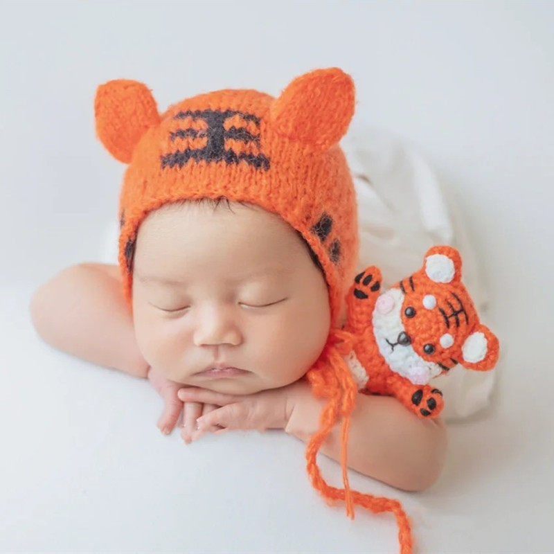 Реквизит для фотографии для новорожденных, шапка, детская кукла, комплект, тигр