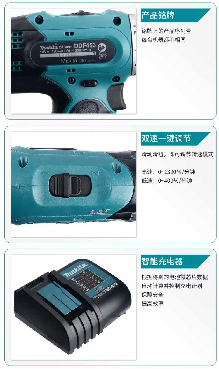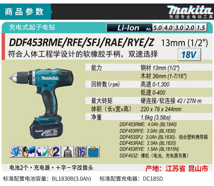 - DDF453 Двойная мощность (2,0AH медленная зарядка двойная мощность)