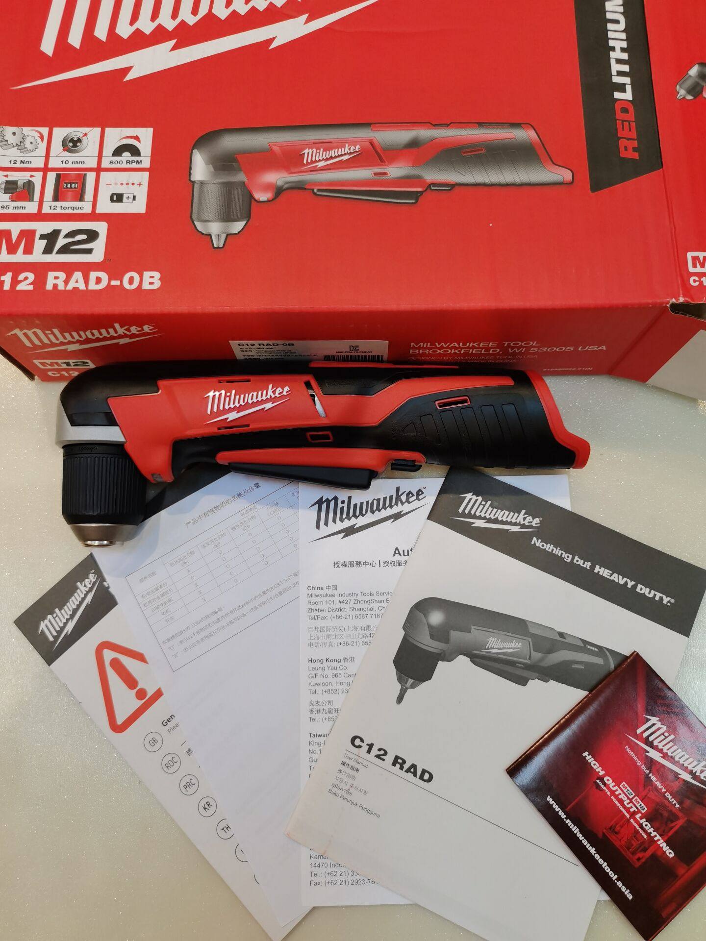Milwaukee Miwaki 10MM Аккумуляторная угловая электрическая дрель C12RAD-0B Угловая дрель Электрическая угловая дрель 90 градусов....Голый металл, голый металл...