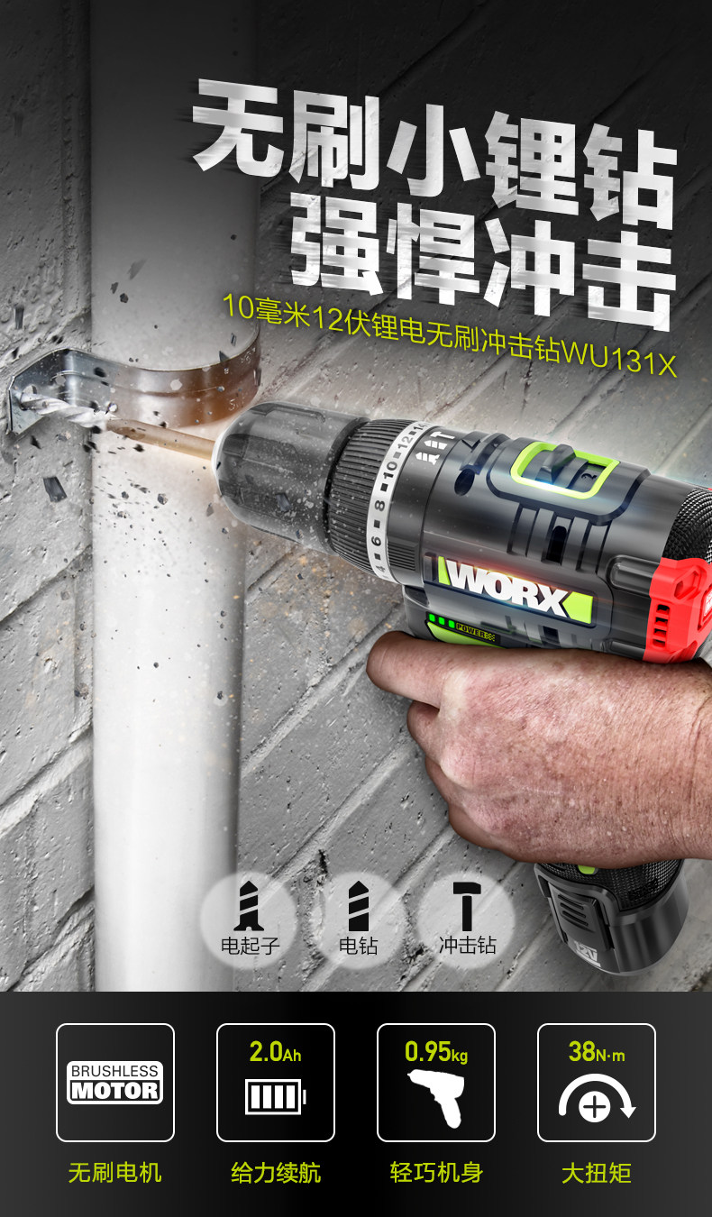 Бесколлекторные литиевые батарейки, пистолет, фонарь, электрическая электродрель, 131x