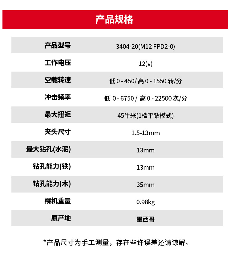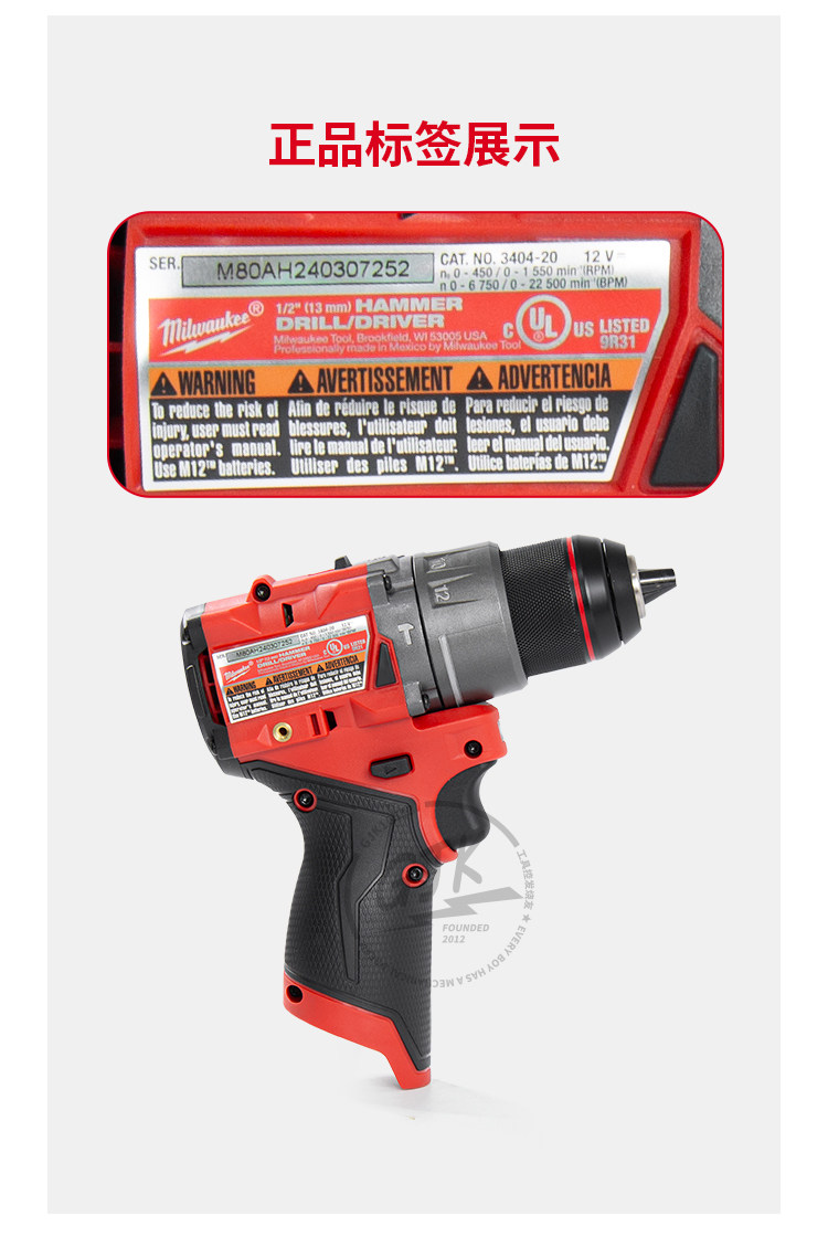 米沃奇 Оригинальная импортированная из США литиевая батарея 3404-20 12 Бесщеточная ударная электрическая дрель Miwaqi V Национального банка FPD2
