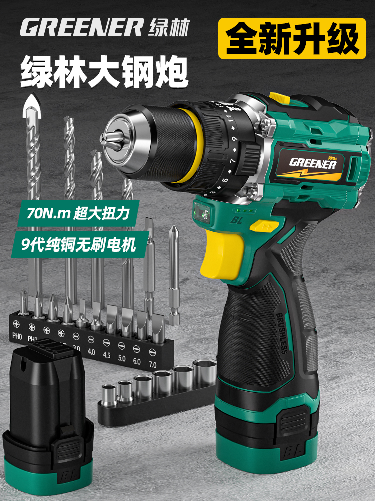 Зеленая лесная стальная пушка Электрическая сверло бесщеточный ударный вспышка на стенах на основе малого лития электрического инструмента небольшая стальная пушка Pro Pro