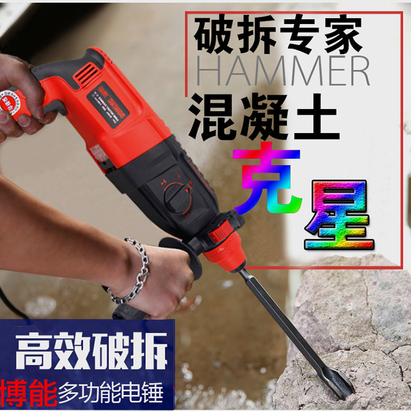 Электрический молоток Boneng Electric Hammer Drilling Electric Hammer Electric Pick Dual -Rill 26/28 Электрический молоток буровой головка Домохозяйство с высоким содержанием мощного света -типа электрический молот