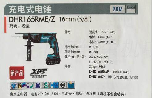 Makita Electric Tool Dhr165rme/z 18v литийная батарея положительная и отражающая скоростная настройка четырехпери