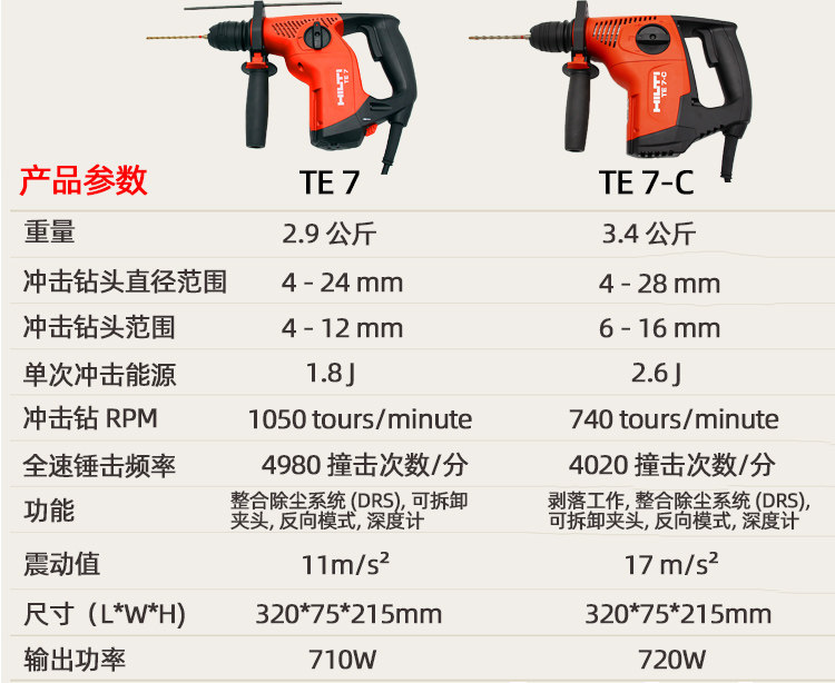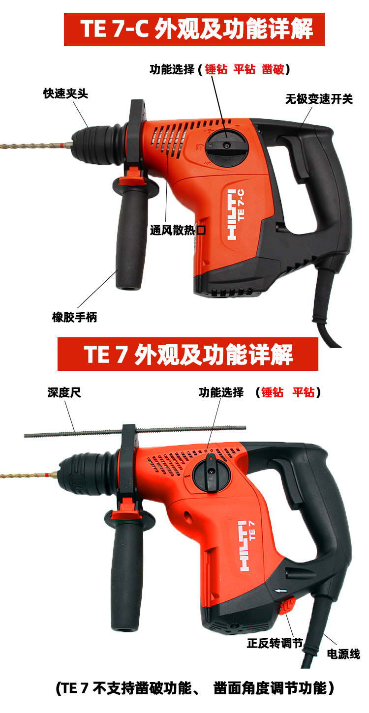 Hilti Hileti Te7-C Электрический молот 720W Ударный бурение промышленного класса Электрическое бурное электрическое электрическое электрическое электрическое инструмент te 7