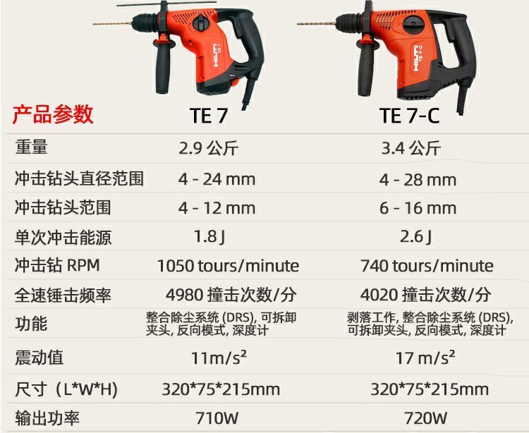 Hilti Hilte Electric Tool TE7-C Электрический молоток 720W Ударный бурение промышленного класса Электрическое бурение Электрическое выбор 7 TE 7