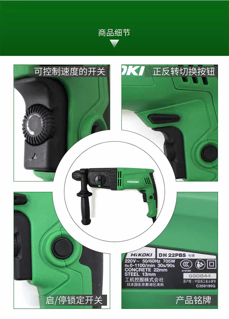 Япония Hitachi Hitachi DH22PBS Электрический молот Электрический бурение с двойным назначением скорости скорости пистолет пистолет алмаз