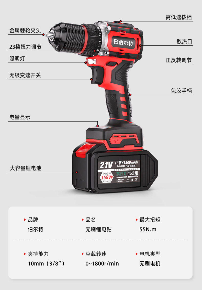 伯尔特 Бесколлекторный перезаряжаемый набор инструментов с зарядкой, литиевые батарейки, высокая мощность