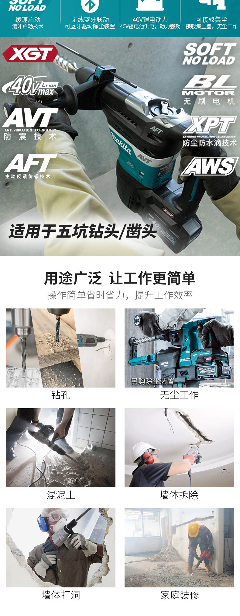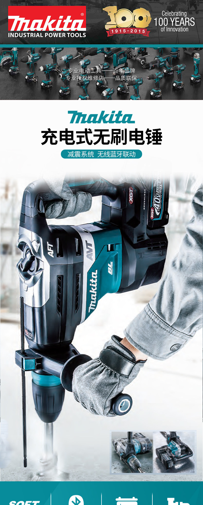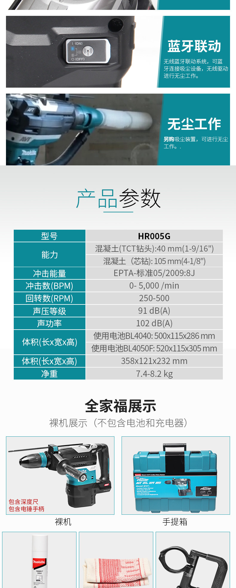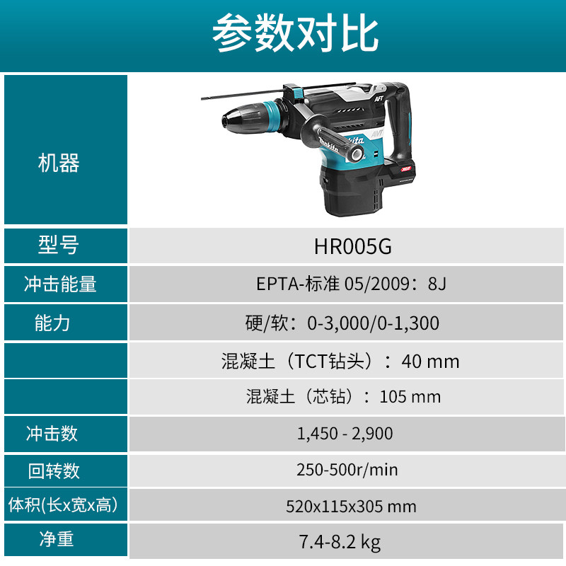 Макада заряжается большой электрический молот HR005G Высокая ударная буровая промышленность -Главная промышленная щетка с двойным использованием молотка 40 В молоток 40 В