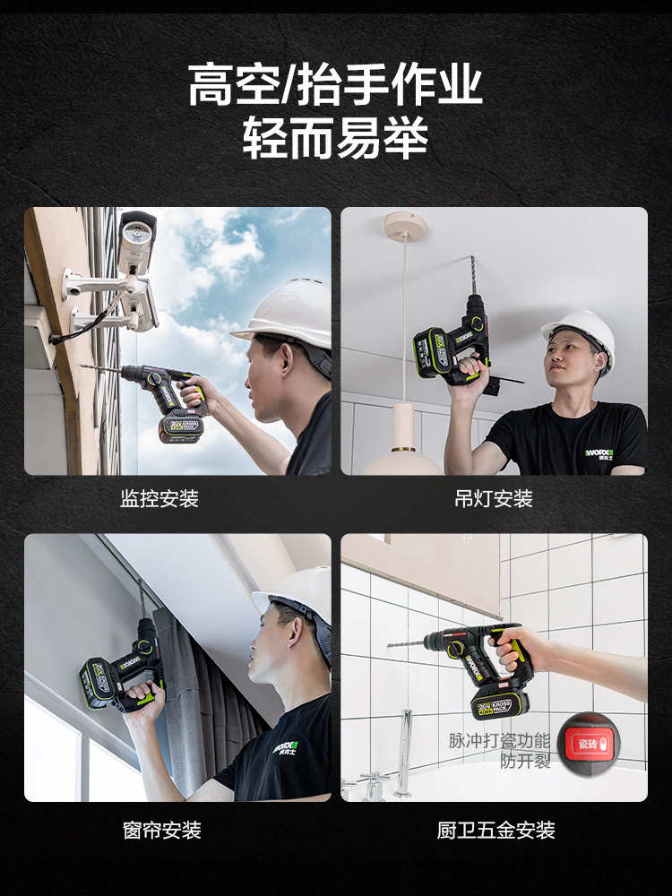 Легкая литиевая электрическая ударная дрель Vickers WU380S, бесщеточная бытовая перезаряжаемая электрическая дрель, ударная дрель, беспроводной аккумуляторный электроинструмент