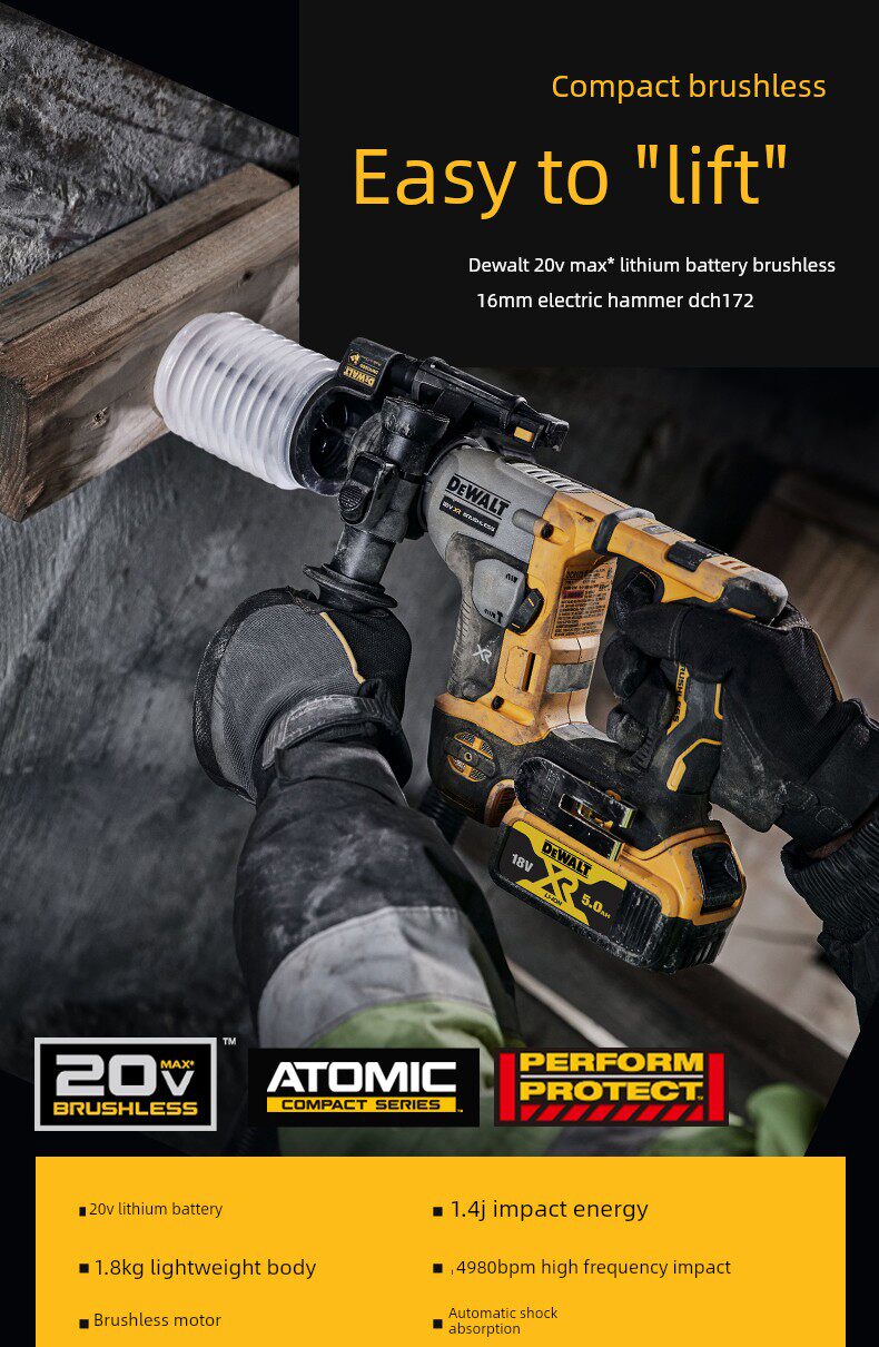 DeWalt 20V Бесщетающий зарядный молот DCH133/263 Спиганный молоток Электрический выбор Трехцелевой регулирование скорости промышленного класса DCH172