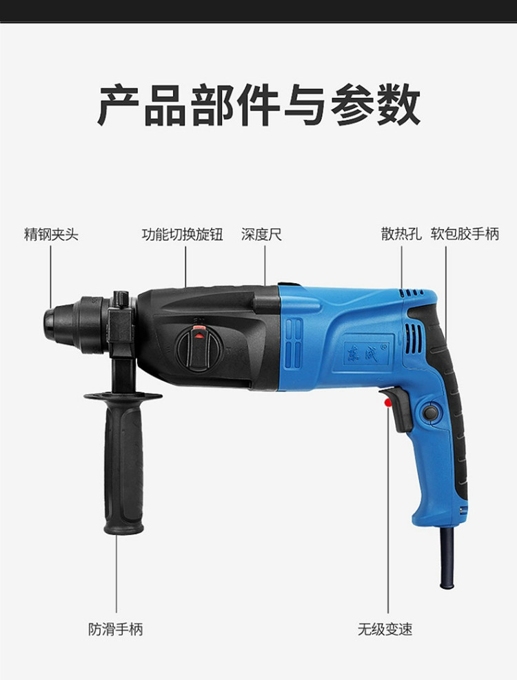 东成 Легкий электрический молот домохозяйство многофункциональное электрическое буриль высокая мощность Dongcheng Electric Pick Небольшой электрический молоток бетон.