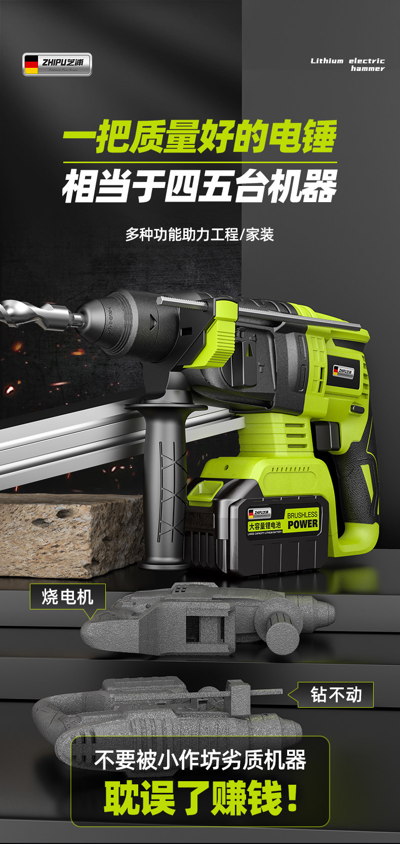 芝浦 Бесколлекторные перезаряжаемые литиевые батарейки, беспроводная электродрель, высокая мощность