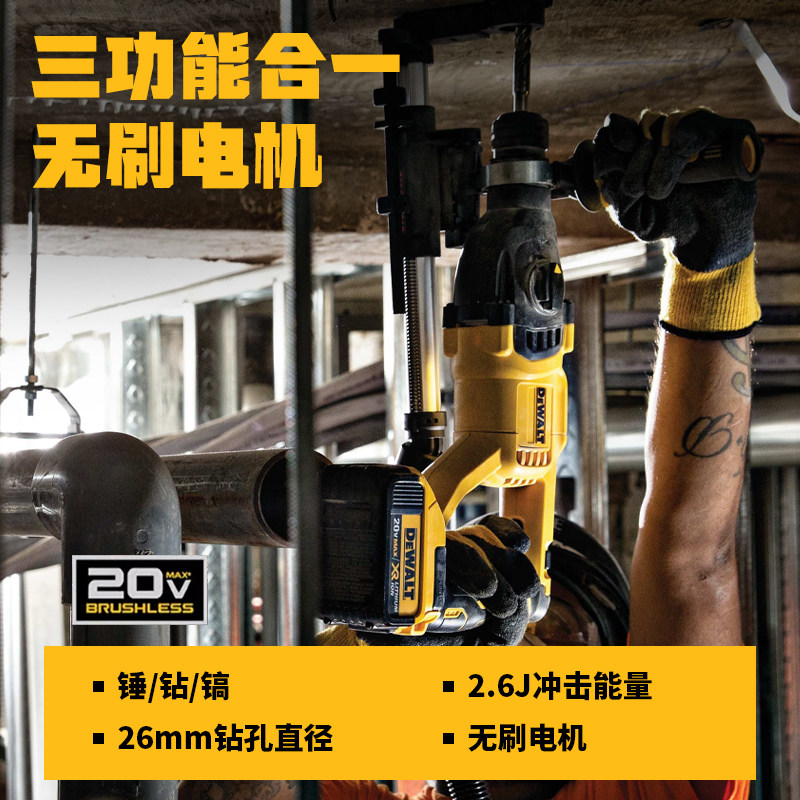 Электрический перфоратор DEWALT, 20 В, перезаряжаемая бесщеточная ударная дрель, легкая электрическая ударная дрель двойного назначения с четырьмя ямами, мощная ударная дрель DCH133