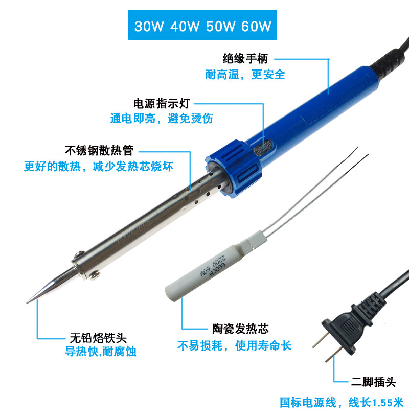 Гуанчжоу Huanghua Электрический паяльник железо 30W40W50W60W Внешняя термо сварочная сварка сварки 640C 650 660CS