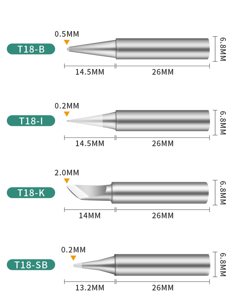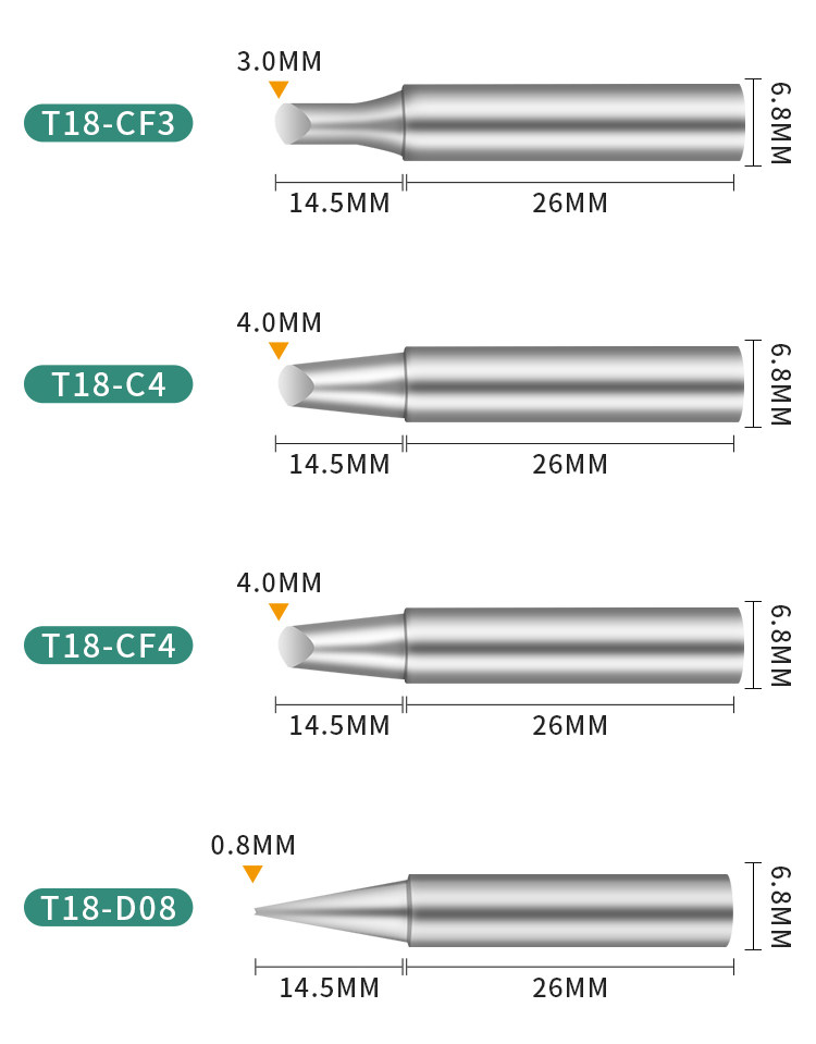 White Light FX888D LUO TIEZUI ELBOW ONE-LINE T18 Расширенная паяльная головка T18-K Тип ножа T18-CF15 Подкова форма