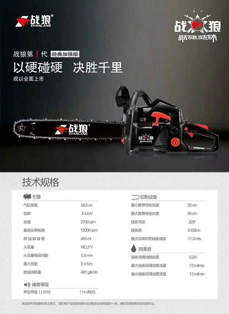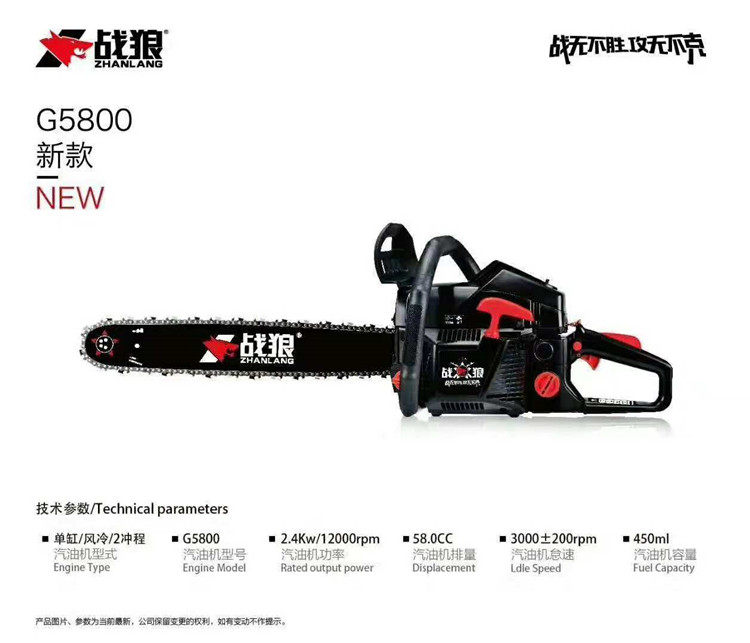 War Wolf 5800 Нефтяная пила, Деревянная деревянная пила Бензин