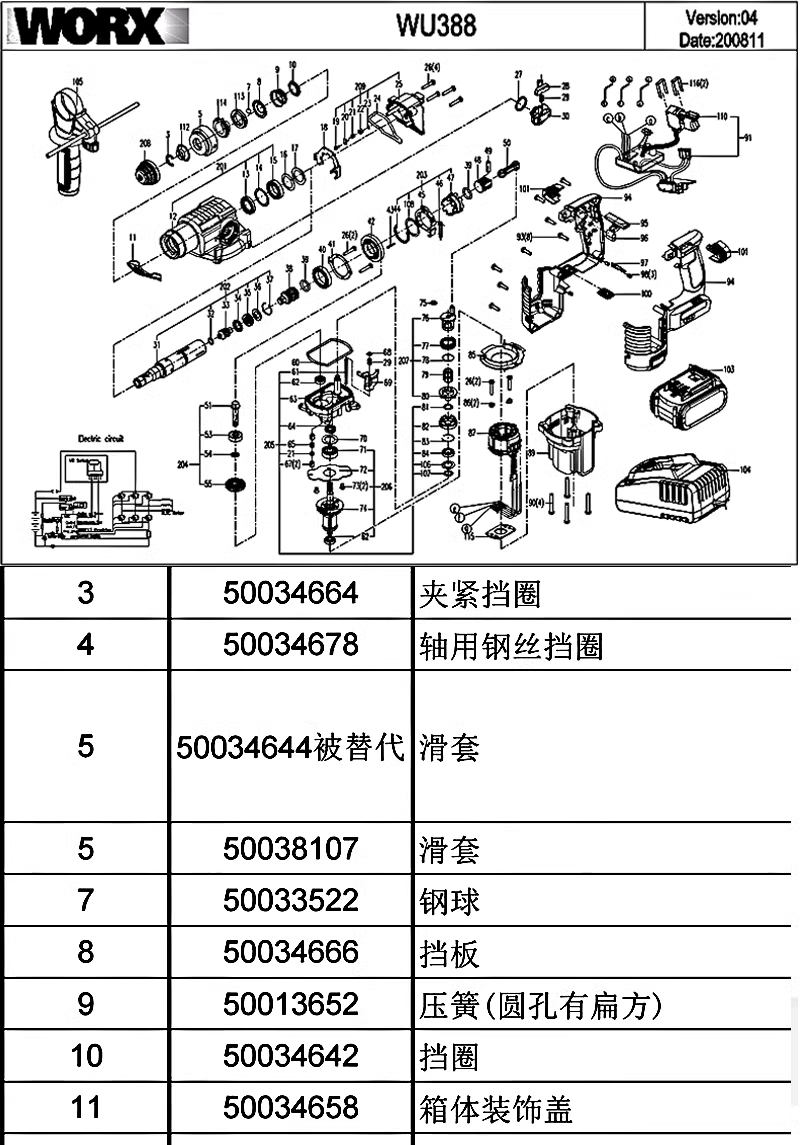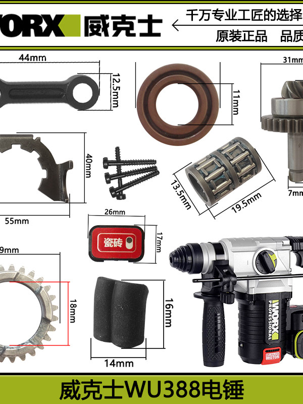 威克士 Wu388 Электрический молоток оригинальный аксессуарный поршня поршень соединительная крышка стержня, зубчатая шестерня Rotor