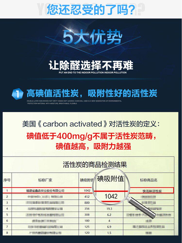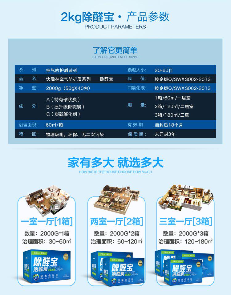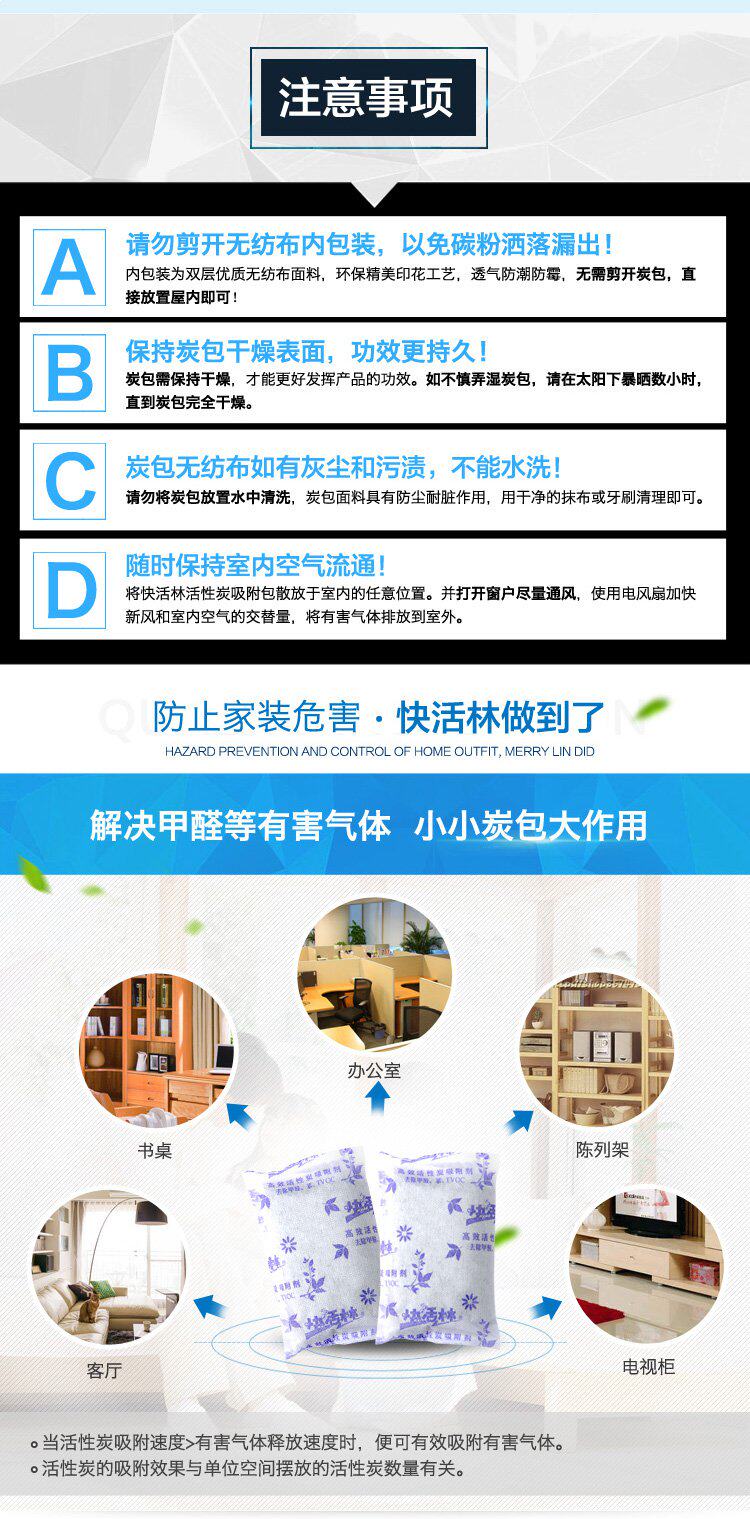 Счастливый лес активированное удаление углерода Формальдегид дезодордант Адсорбент Новый дом Удаление автомобиля Удаление кокосового оболочка Активный углеродный пакет 2000G