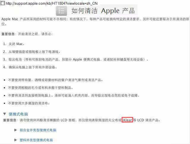 Штаб -квартира яблокаСпециальный магазин указан как выделенный чистящий продукт, который применяется кApple Care(План обслуживания Apple), теперь расширяйте