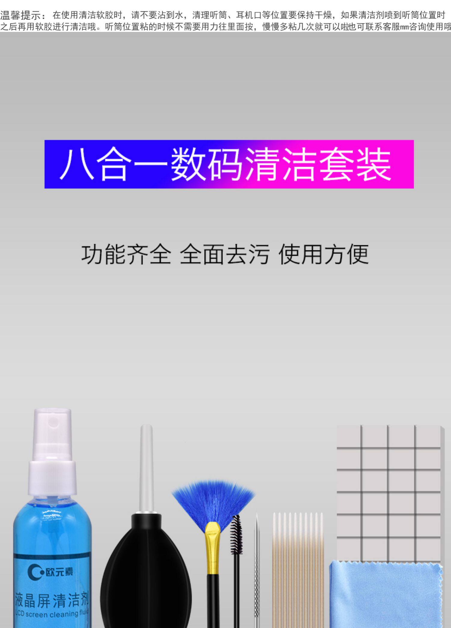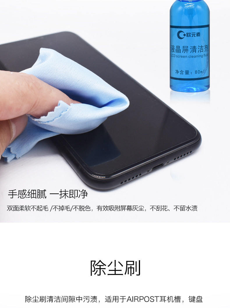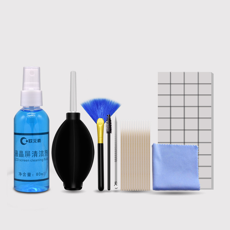 Мобильный телефон, экран, мегафон с зарядкой, объектив, хлопковые ватные диски, салфетки, щетка, кисть, комплект, звуковая система