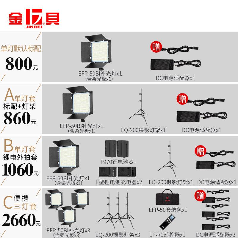 金贝 EFP-50BI Фотография светодиодная видеокамера Live Live Room Light Интервью Micro-Film Studio