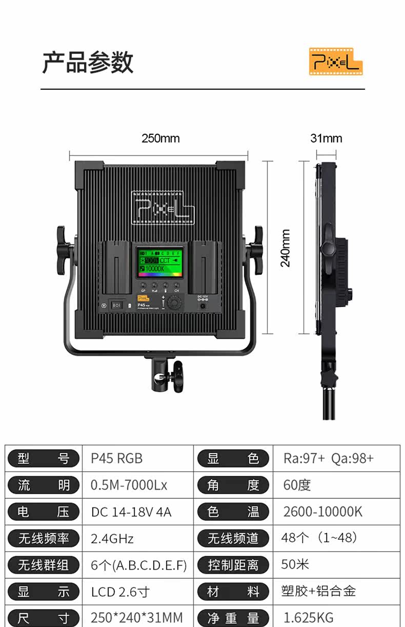 Диаграмма p45rgb заполнить светлую светодиодную фотографию Light Light -Color Professional Antoor Atmosphere Lightning Outdoor Micro Movie