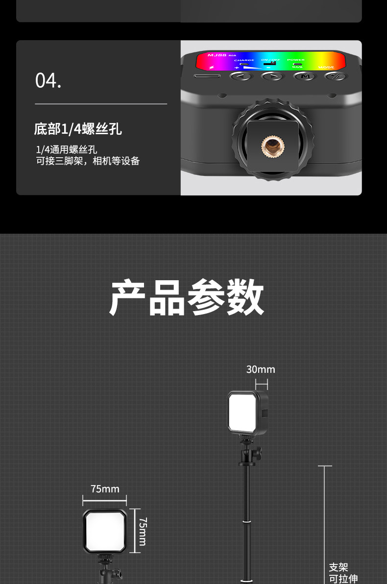 - [Мягкая наполнение зарядки] Одно белый свет+позиция мобильного телефона с коротким полюсом (селфи и прямая трансляция)