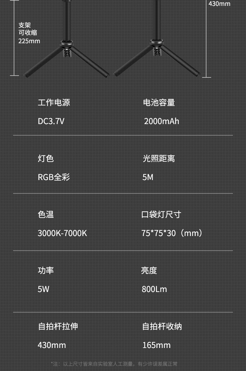 - [Мягкая наполнение и заполнение света] Трехноколорный свет+Короткий полюсный мобильный телефон (селфи и прямая трансляция)
