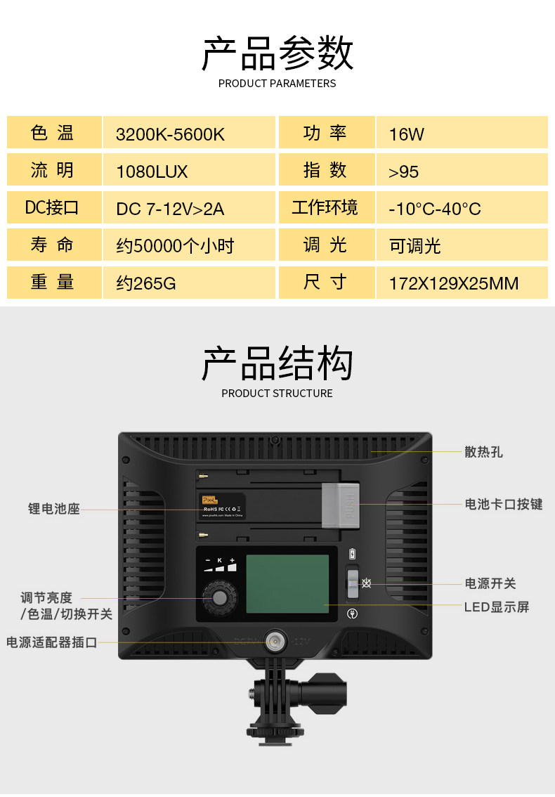 Светильник Pinse P20 для фотосъемки, светодиодный свадебный зеркальный беззеркальный якорь для съемки на открытом воздухе, мягкая пленка и телевидение, всегда яркий портативный заполняющий светильник