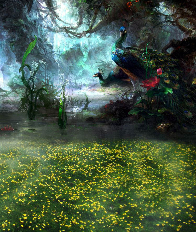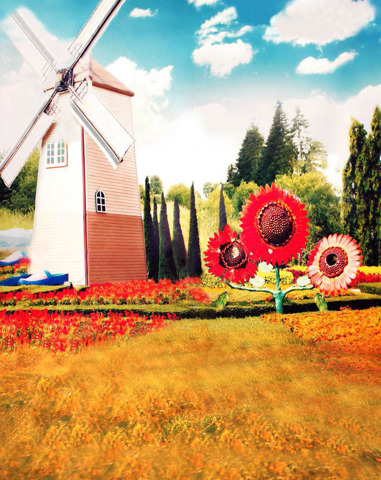 Пейзаж фоновый фон масла фон детская съемка фоновая сеть красный живой костюм костюм 3D Стерео фоновый дизайн Douyin Photo Printing