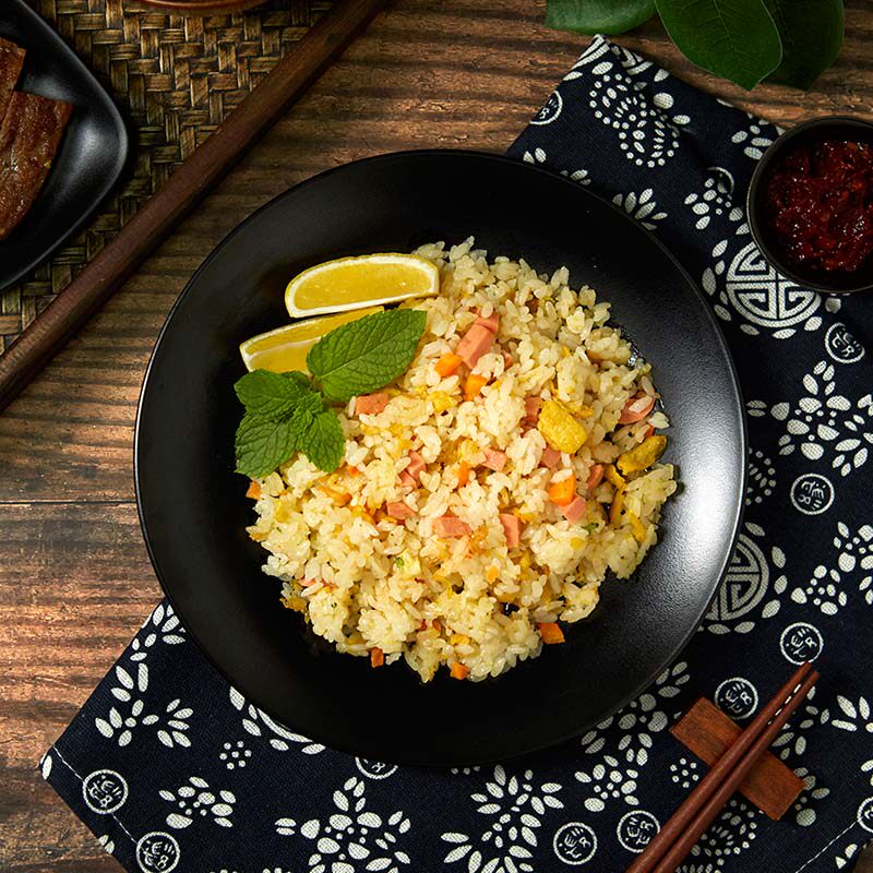 Жареный рисовый рис с жареной рисовой лапшой