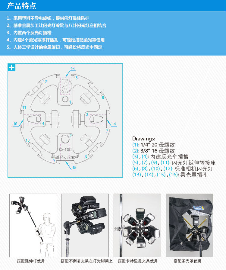 Аксессуары для фотосъемки KUPO Bagua, изолирующая лампа со вспышкой, держатель лампы KS-100, адаптер, аксессуары