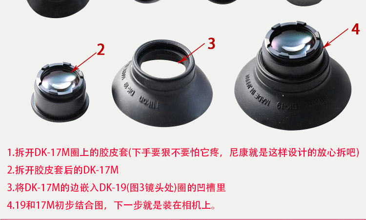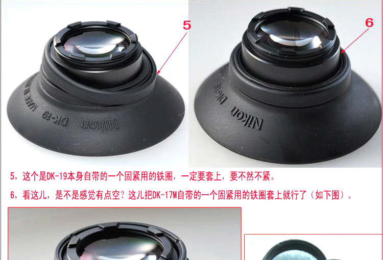 Метод установки очень прост. Во-первых, круговое зеркало DK-17 поставляется с камерой и скручивает DK-19 один раз на видоискателе камеры!