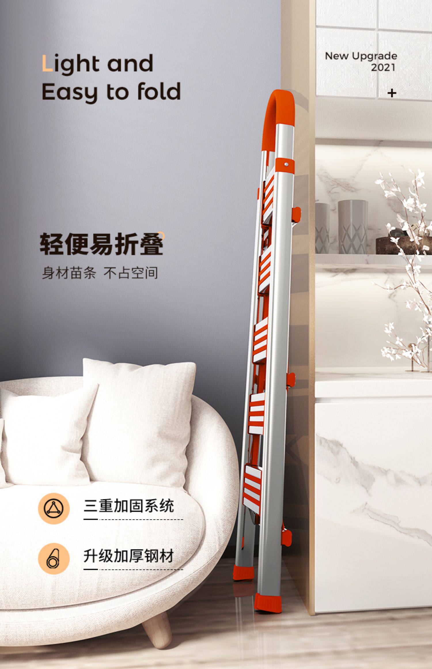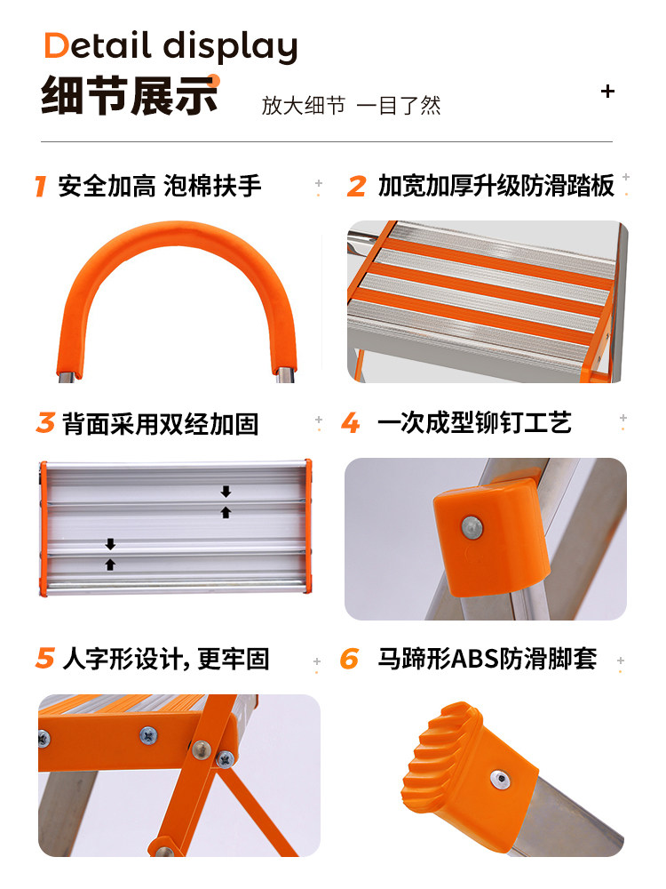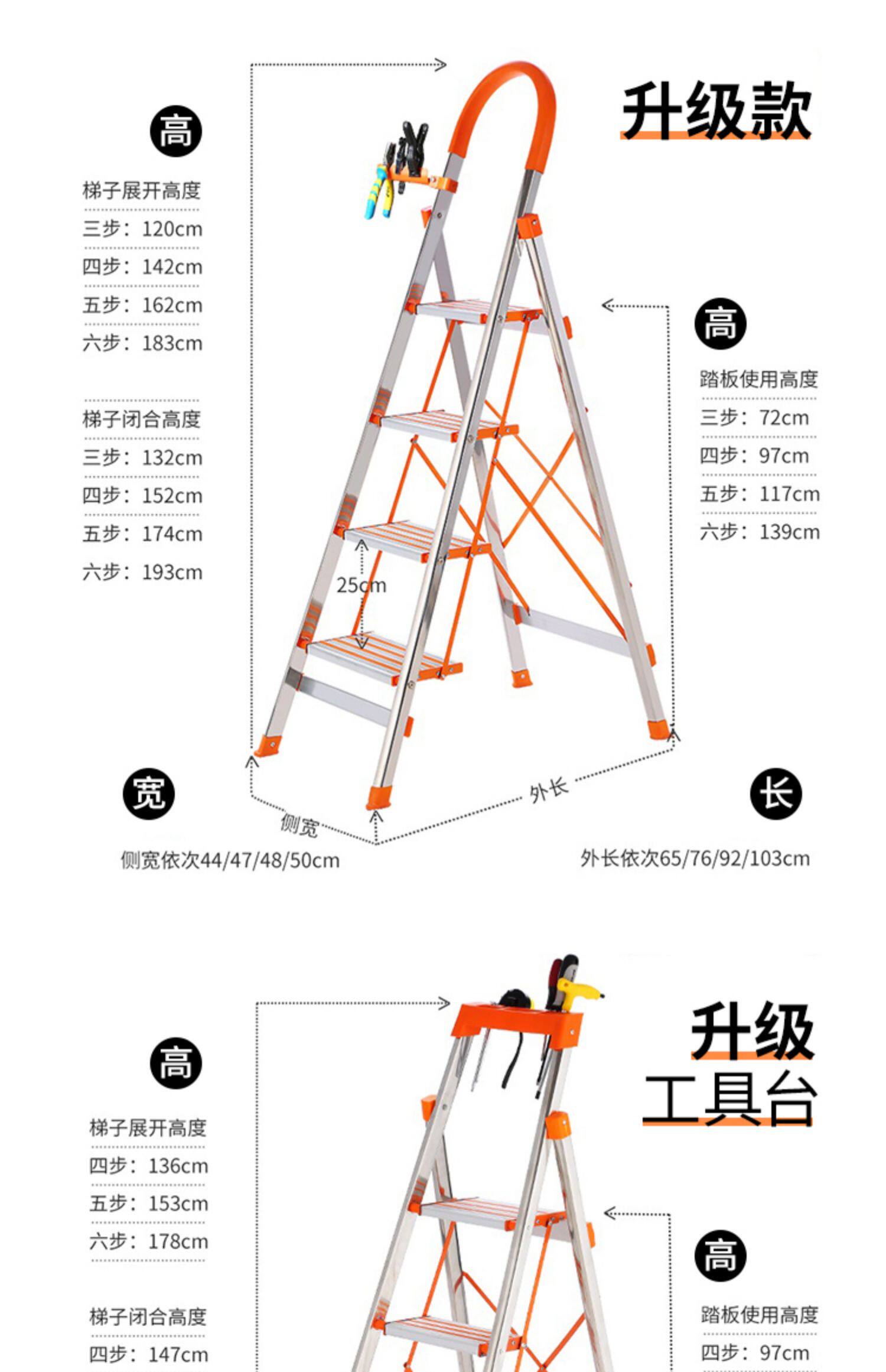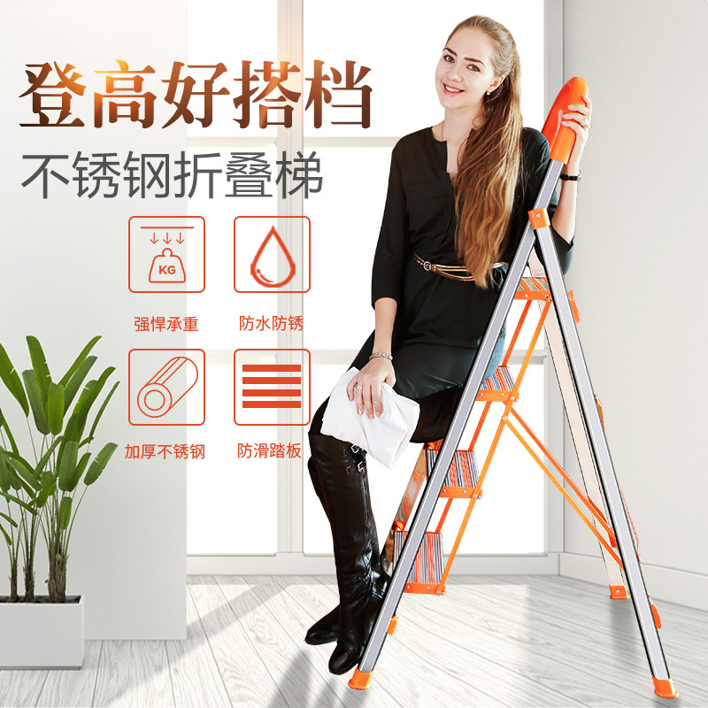怡奥 Лестница домохозяйства складной лестницы из нержавеющей стали человеческое персонаж Многофункциональный эскалатор домохозяйств складной лестница лестницы