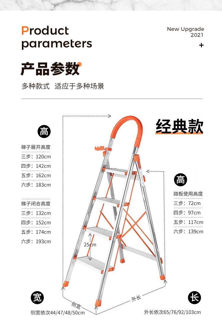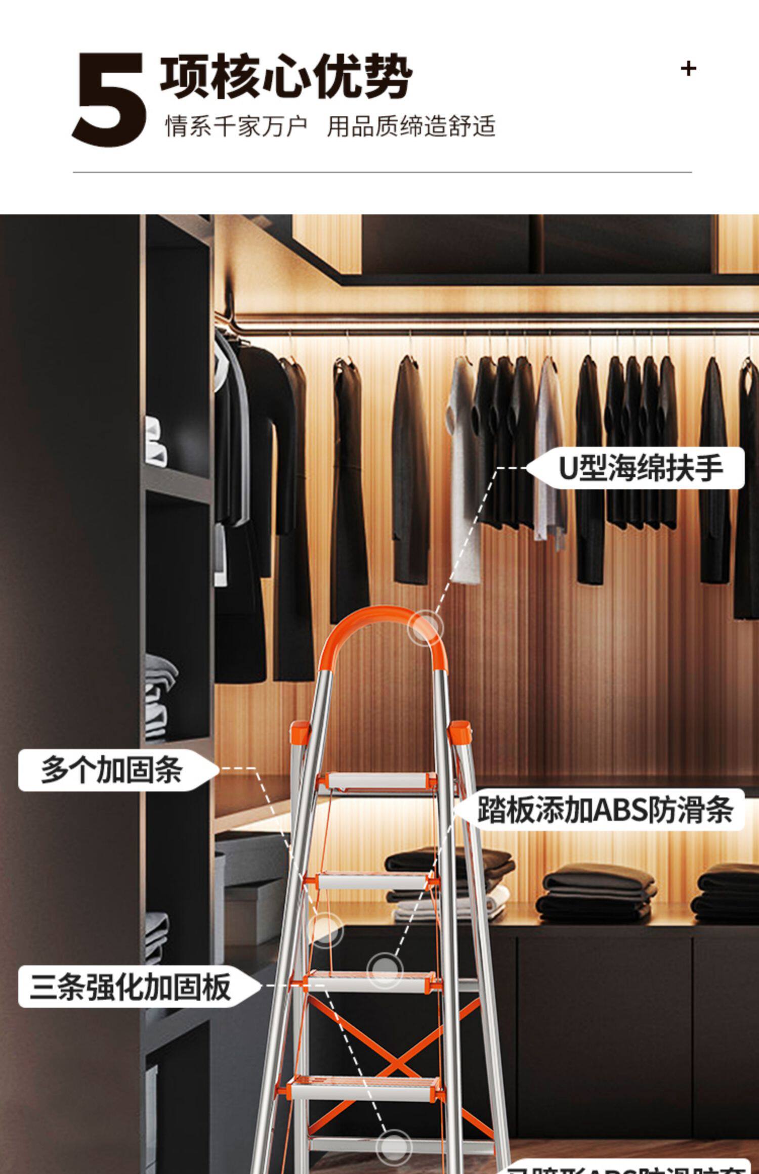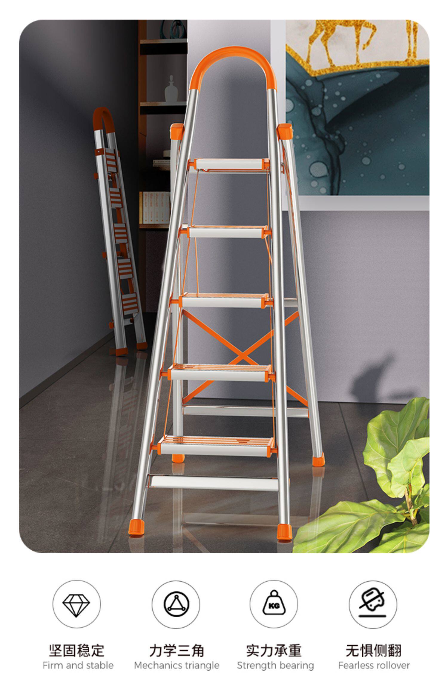 怡奥 Лестница домохозяйства складной лестницы из нержавеющей стали человеческое персонаж Многофункциональный эскалатор домохозяйств складной лестница лестницы