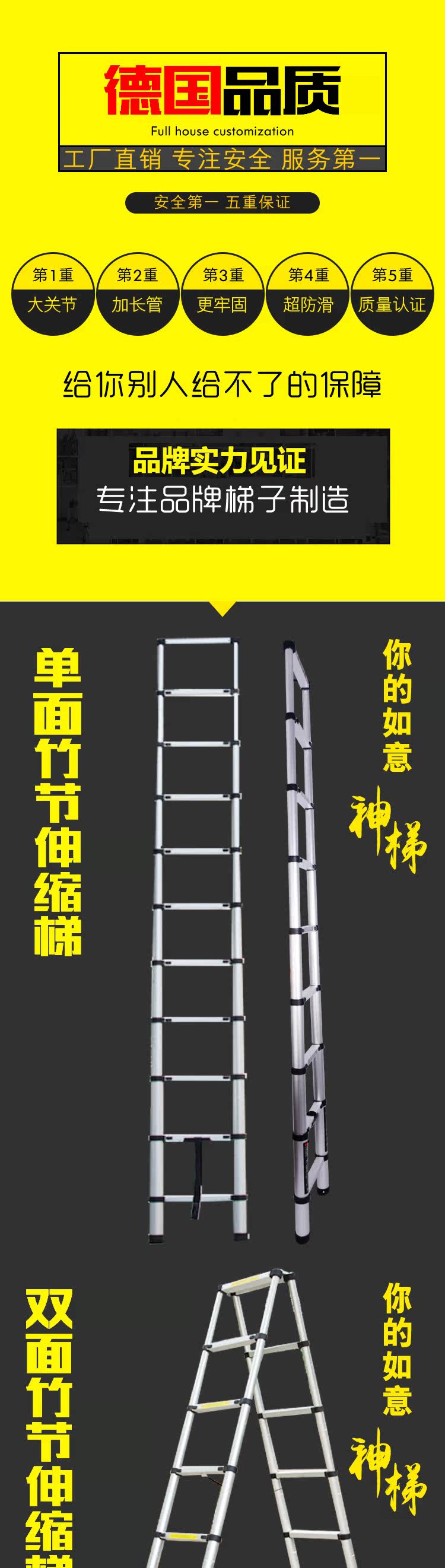 Домашняя лестница телескопическая складка и подъем лестницы сгущенной алюминиевой сплав