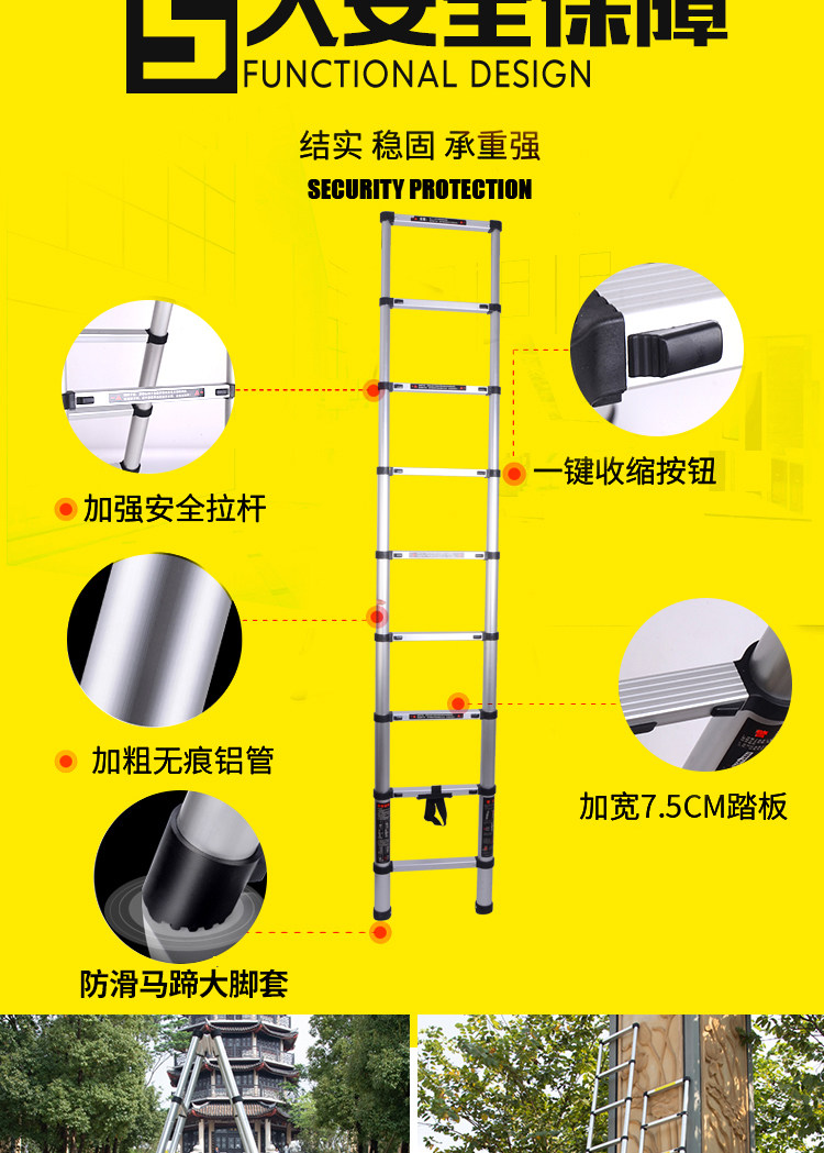 - Прямая лестница 2,6 метра (весом 6,2 кг) 8 шагов