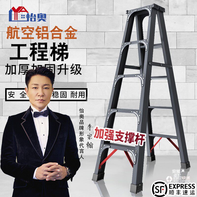 Лестница домашнего лица на основе лиц на основе Hermore Алюминиевый сплав Многословный утолщенный складывающий телескопический подъем Двусторонний инженерный инженер