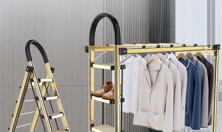 Семейная много -функциональная сокращающаяся лестница вешалки Маленькая L -образная легкая лестница человеческих персонажей не занимает пространственную двустороннюю ступенчатую лестницу