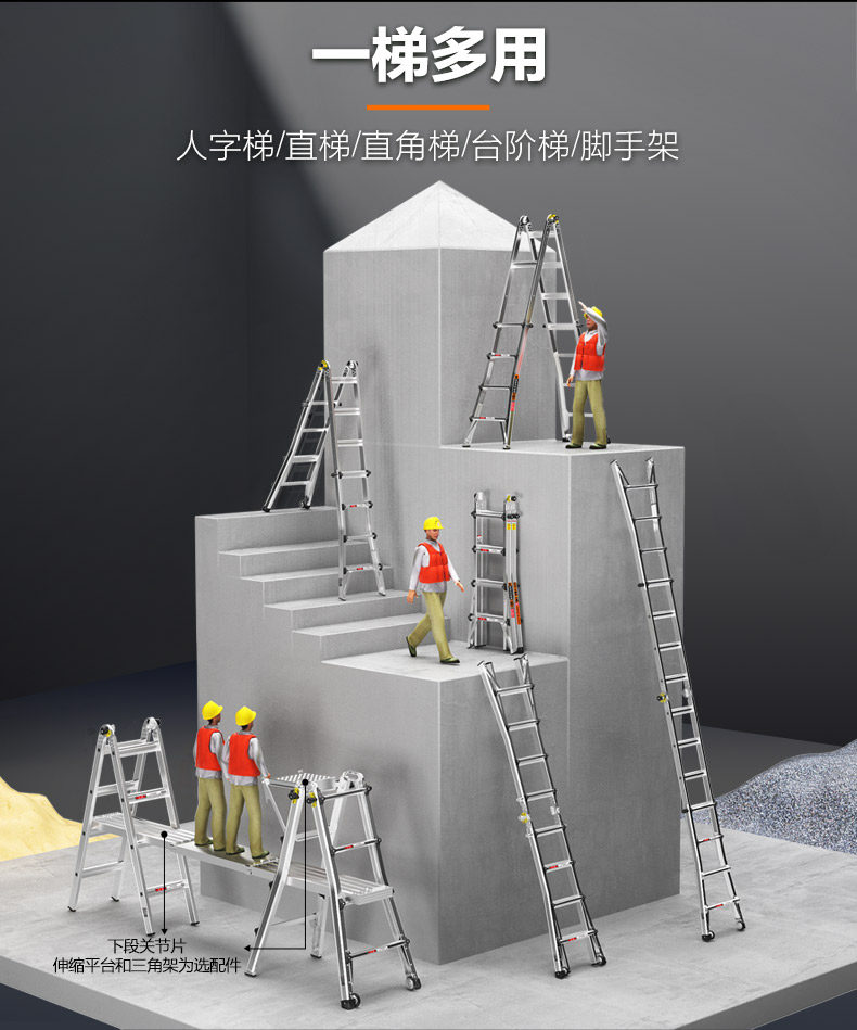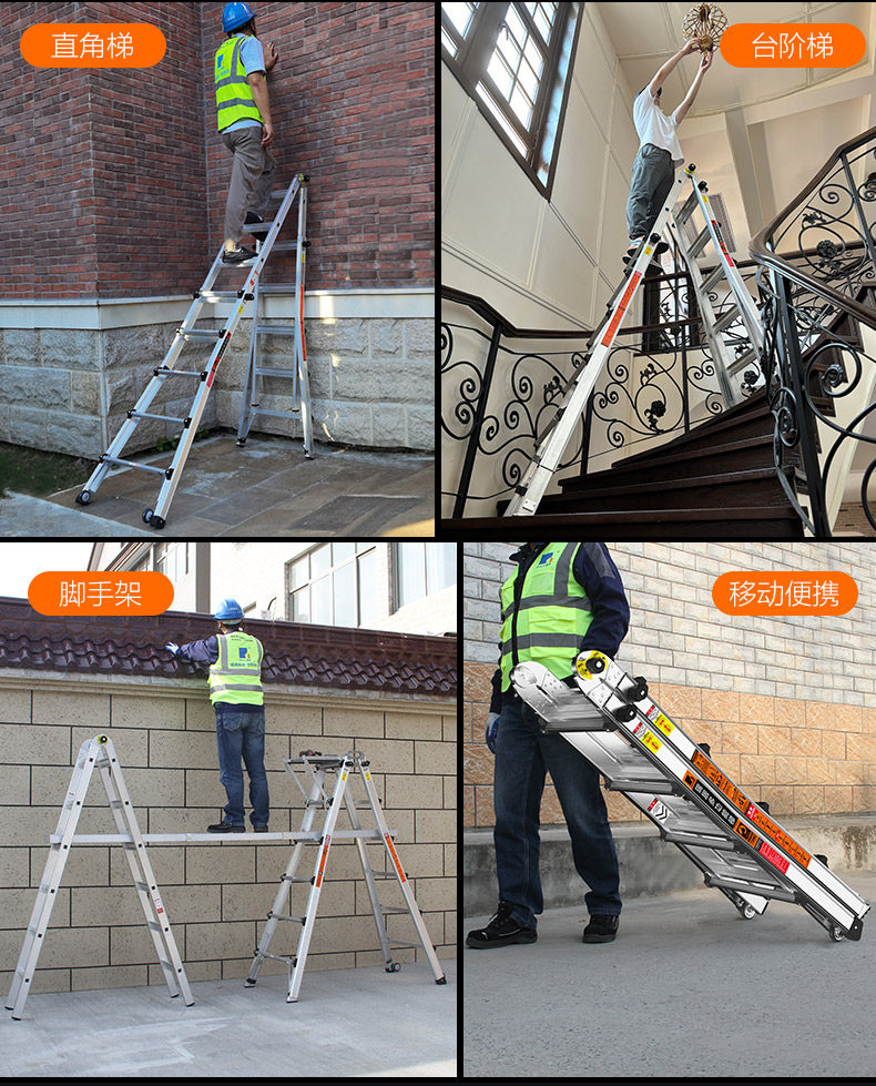 瑞居 Маленькая гигантская алюминиевая сплава телескопическая инженерия Лестница человеческого персонажа Слово Слова Прямая лестница Утолщенная и портативная мобильная дом